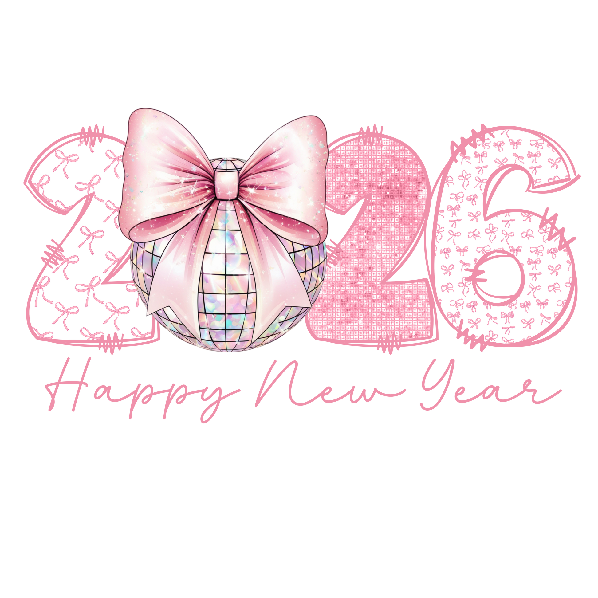HAPPY NEW YEAR 2026 PINK DISCO BALL